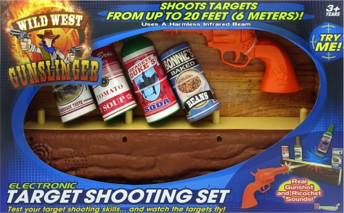 Vstupte do světa kovbojů se sadou, která spojuje zábavu a rozvoj dovedností. S oranžovým revolverem a cíli v podobě plechovek a lahví si děti užijí akční hru doma i na zahradě. Elektronické efekty se zvuky výstřelu a odrazu kulky umocní každé trefení cíle.