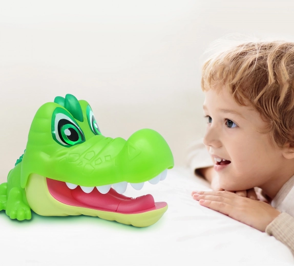 - Interaktivní odezva: krokodýl reaguje na hlas a zvuky dítěte.