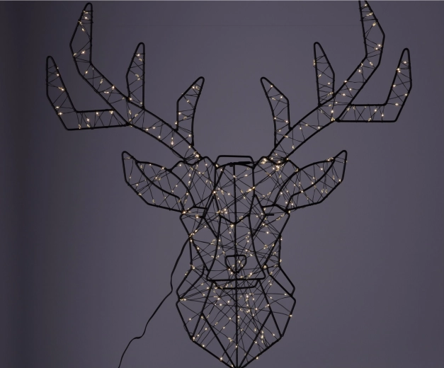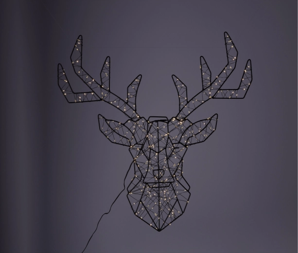 Vneste do interiéru moderní eleganci. Geometrická hlava jelena z černého kovu s LED osvětlením vytváří příjemnou atmosféru a stane se výrazným designovým prvkem na stěně v obýváku, kanceláři i předsíni. Teplé bílé světlo jemně podkreslí večerní pohodu.