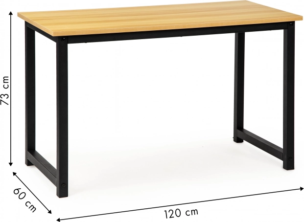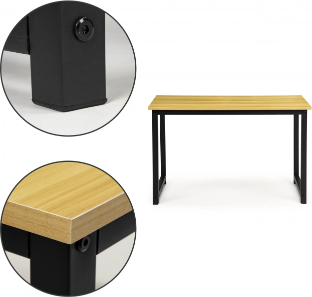 Díky rozměrům 120 × 60 cm získáte prostornou pracovní plochu, která se vejde i do menších místností. Práškově lakované kovové nohy zajišťují výbornou tuhost a stabilitu, zatímco protiskluzové patky chrání podlahu před poškrábáním.