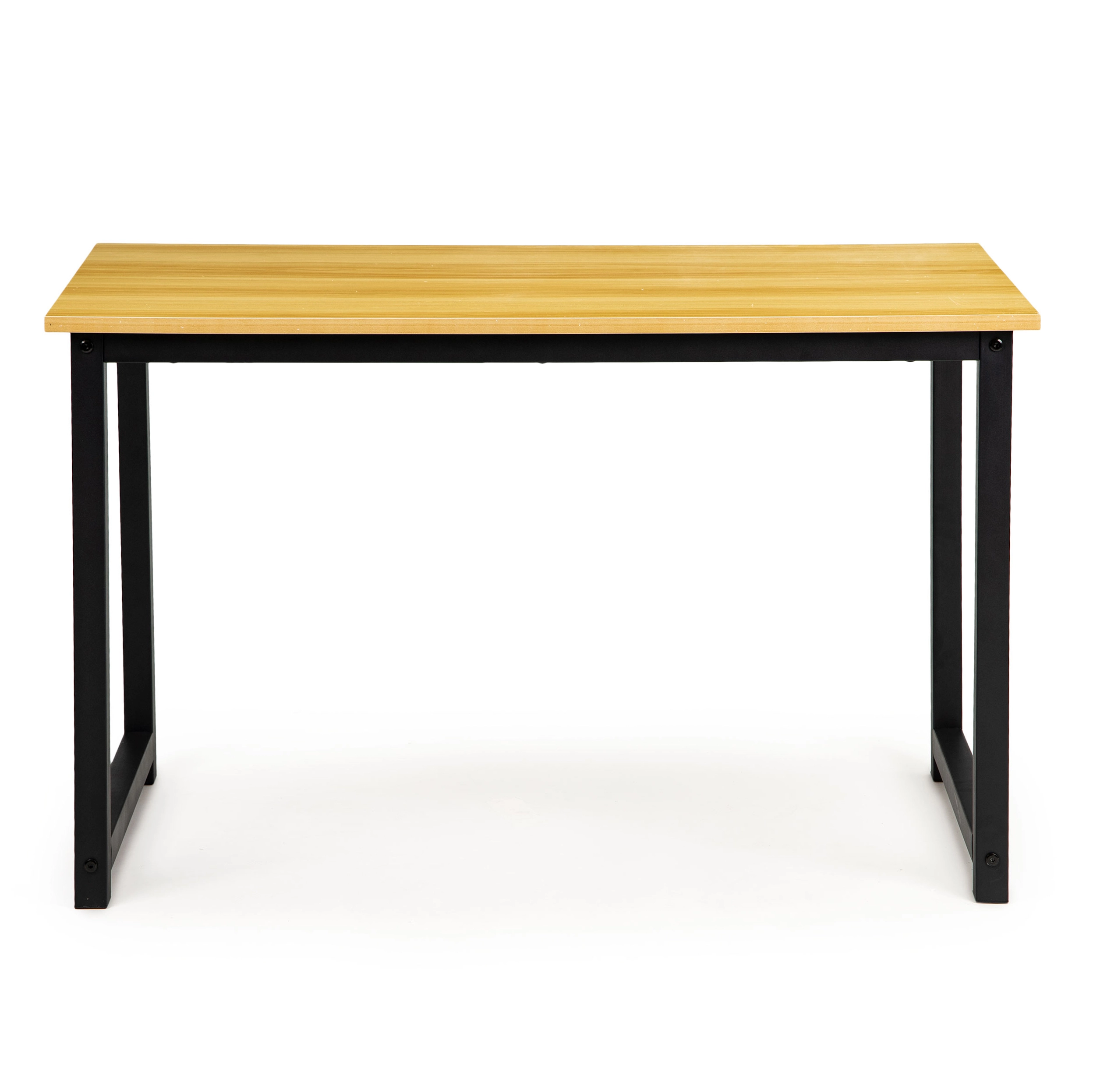 Stůl ModernHome kombinuje přírodní vzhled dřeva se stabilními černými kovovými nohami pro maximální funkčnost a nadčasový vzhled. Laminovaná deska tloušťky 20 mm je snadno udržovatelná a odolná vůči každodennímu opotřebení, takže je ideální pro práci na počítači, učení i kreativní projekty.
