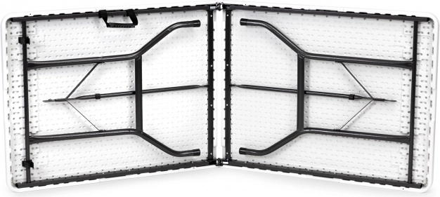 Kovový rám se zámky proti samovolnému složení a protiskluzovými koncovkami zajišťuje stabilitu a bezpečí při každém použití – od rodinných oslav až po profesionální catering.
