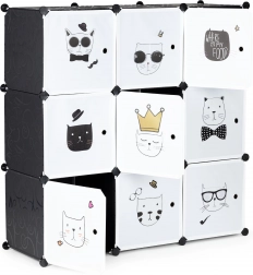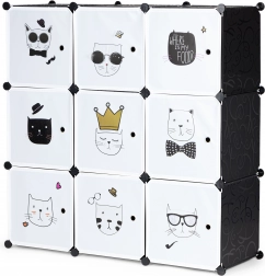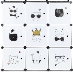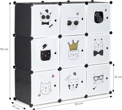 Dvířka s hravými kočičími motivy oživí dětský pokoj a motivují děti k samostatnému udržování pořádku. Montáž je velmi jednoduchá díky pevným ABS konektorům – skříňku sestavíte během chvilky a můžete ji kdykoliv přestavět.