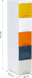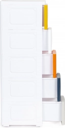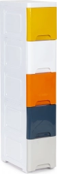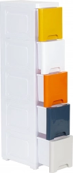 Udržte pořádek stylově a bez námahy. Tento mnohostranný plastový regál s pěti barevnými zásuvkami nabídne dostatek místa pro hračky, kosmetiku i drobnosti do domácnosti. Bílý rám působí čistě a moderně, zásuvky s profilovanými madly se pohodlně vytahují a bezpečnostní zámky brání jejich nechtěnému vypadnutí.
