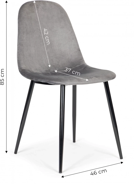 Tyto moderní šedé židle se sametovým potahem skvěle zapadnou k rodinnému stolu i do reprezentativních prostor. Nadčasový vzhled kombinuje sametovou látku s černými ocelovými nohami a vytváří elegantní dominantu interiéru. Tvarované opěradlo a pěnové polstrování poskytují pohodlí při každodenním používání.