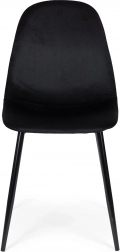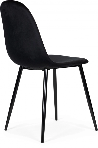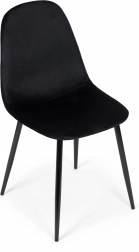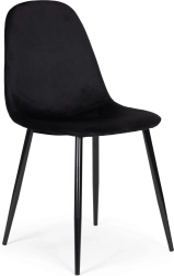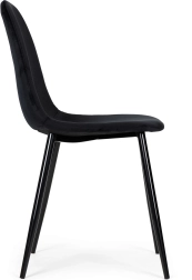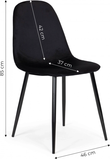 Stylová sada čtyř židlí zaujme moderním designem, sametovým čalouněním a kovovými nohami pro dlouhou životnost. Nabízí vysoký komfort sezení díky kvalitní pěně a tvarovanému opěráku. Ochranné koncovky chrání podlahu, univerzální černé provedení se hodí do jídelny, obýváku i kanceláře.