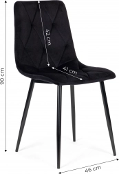 Sada židlí ModernHome vyniká jemným sametovým čalouněním s diamantovým prošíváním, které působí luxusně a zároveň je příjemné na dotek. Černé kovové nohy zajišťují pevnost a stabilitu, zatímco ochranné koncovky zabraňují poškrábání podlahy. Díky univerzálnímu vzhledu se židle skvěle hodí do jídelny, obývacího pokoje, kuchyně i kanceláře.