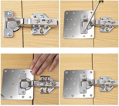 Sada obsahuje 4 desky a šrouby pro montáž, které vyhovují většině nábytkových závěsů na trhu.