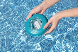Dávkovač je navržen tak, aby plaval na hladině vody a rovnoměrně rozptýlil chemikálie po celém bazénu.