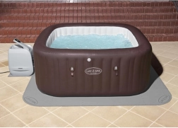 Součástí je i samostatná podložka pod čerpadlo, která zajistí stabilní a bezpečné usazení topného/filtračního zařízení. Pokud máte větší vířivku než 196 × 196 cm, jednoduše spojíte více sad a získáte potřebnou ochrannou plochu.