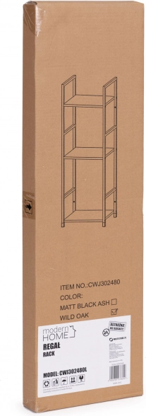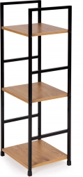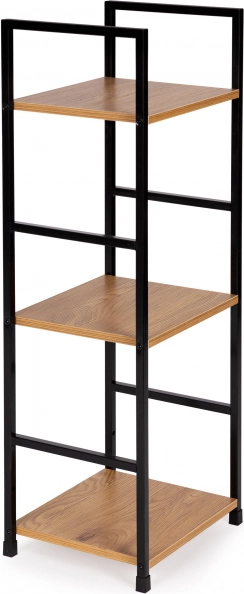 Police z MDF desky s povrchem v dekoru dřeva jsou odolné a snadno se udržují. Praškově lakovaný kovový rám z hranatých profilů (12 mm) zajišťuje pevnost a dlouhou životnost. Ochranné koncovky chrání vaši podlahu, přiložený úhelník pro kotvení ke stěně zvýší bezpečnost v domácnostech s dětmi.