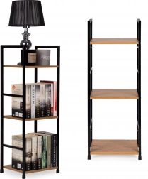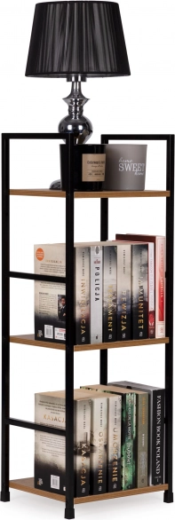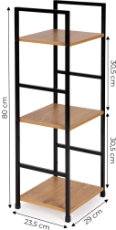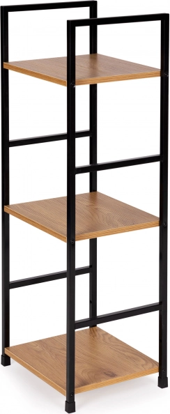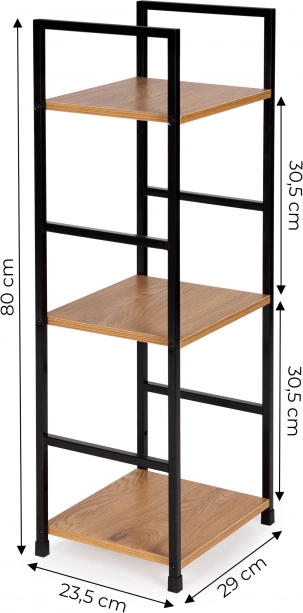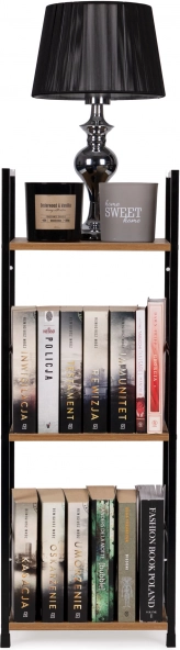 Stylová knihovna v industriálním stylu kombinuje černý kovový rám a dřevodekor MDF police. Nabízí 3 praktické police, stabilní konstrukci a univerzální využití v obýváku, ložnici, předsíni i koupelně. Díky kompaktním rozměrům se hodí i do menších prostor, snadno se montuje a nepoškrábe podlahu díky ochranným koncovkám.