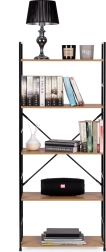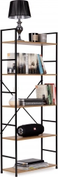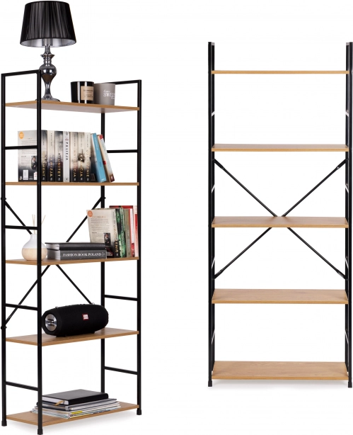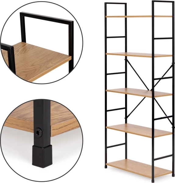 Stylová knihovna v loftovém designu kombinuje černý kov a dřevodekor pro moderní vzhled v každém interiéru. Nabízí 5 prostorných polic, stabilní konstrukci s křížovým vyztužením a ochrannými nožkami proti poškrábání podlahy. Ideální do obýváku, ložnice, pracovny i koupelny. Snadná montáž dle anglického návodu.