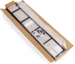 Zesílená krabice se separátory chrání při přepravě. V balení je i páska a šrouby pro upevnění ke zdi.