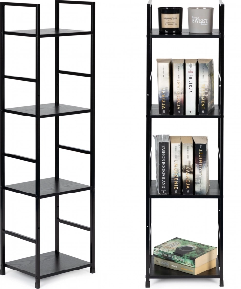 Tato úzká a vysoká knihovna šetří místo a zároveň poskytuje dostatek úložného prostoru pro dekorace, rostliny, knihy i koupelnové doplňky. Minimalistický loft design se snadno sladí s moderními i skandinávskými interiéry.