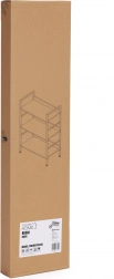 Promyšlené detaily zvyšují pohodlí při každodenním používání: nastavitelné nožky vyrovnají nerovnosti podlahy a ochranné patky zabrání poškrábání. Díky svému kompaktnímu půdorysu se police hodí do menších prostor a díky otevřené konstrukci působí lehce a vzdušně.