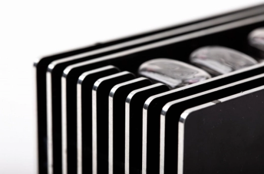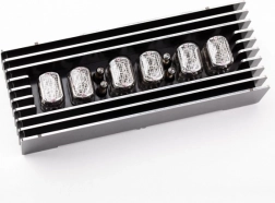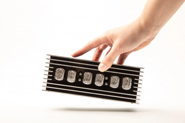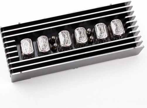 Šest původních Nixie trubic z historických zásob přináší nezaměnitelný oranžový svit a autentickou vintage estetiku v moderním provedení.