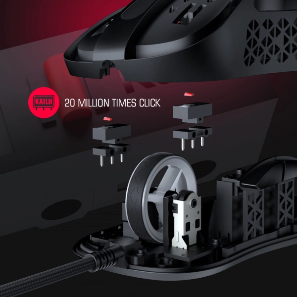 Mikrospínače Kailh s životností 20 milionů kliknutí zajišťují jistou odezvu. Kvalitní teflonové kluzné plochy na spodní straně poskytují plynulý pohyb.