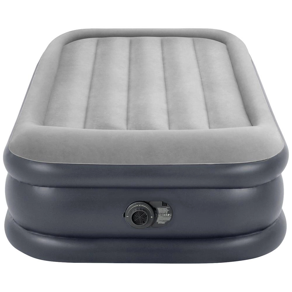 Jednolůžková nafukovací postel INTEX nabízí rozměry 191 × 99 × 42 cm, vestavěnou elektrickou pumpu pro rychlé nafouknutí, sametově velurový povrch pro pohodlí a odolnou konstrukci Fiber‑Tech / Dura‑Beam pro stabilní oporu. Maximální nosnost 136 kg, součástí je taška na přenášení a záplata.