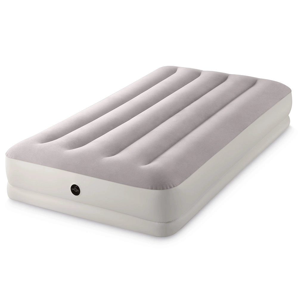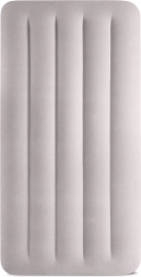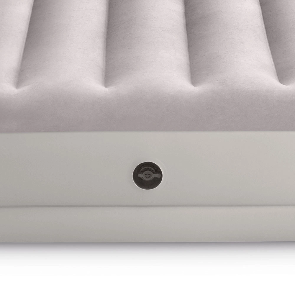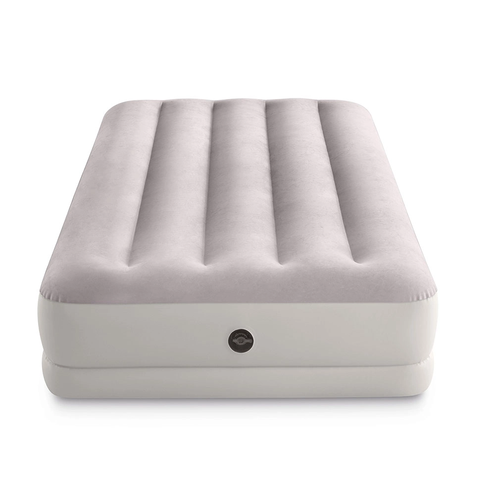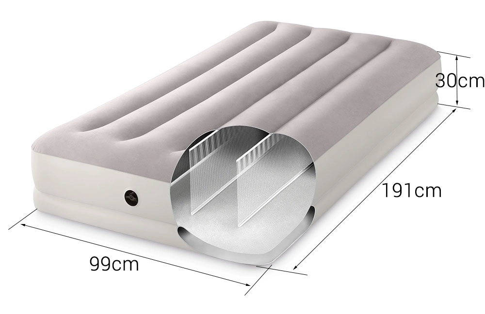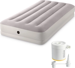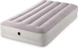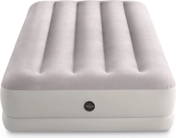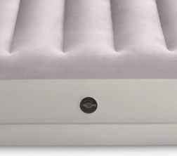 Nafukovací postel INTEX kombinuje odolný PVC materiál s měkkým flockovaným povrchem, který je příjemný na dotek a zlepšuje komfort spánku. Zvýšená konstrukce s podélnými komorami a vnitřními výztuhami zajišťuje stabilitu bez houpačkového efektu a spolehlivou oporu páteře.