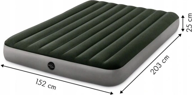 Pohodlná nafukovací matrace INTEX pro dvě osoby nabízí rozměry 203 × 152 × 25 cm a rychlou přípravu díky přiložené elektrické pumpě. Povrch z příjemného veluru je voděodolný a měkký na dotek, konstrukce s technologií Dura-Beam Fiber zajišťuje stabilitu a oporu páteře. Ideální na domácí přespání i kempování, s rychlým nafukováním a vyfukováním přes Boston ventil.