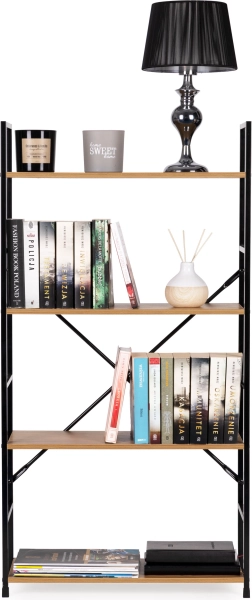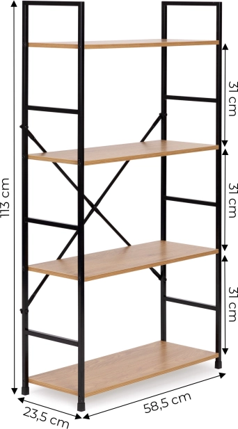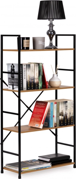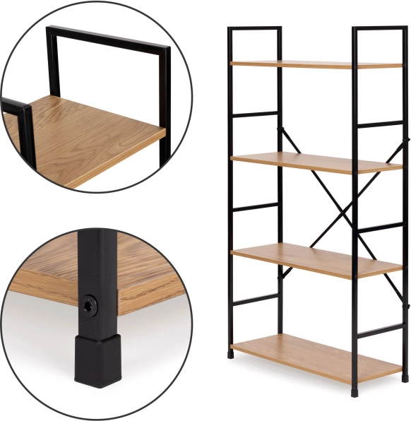 Poličky vyrobené z MDF desky a stylový kovový rám dodávají knihovně moderní vzhled vhodný do každé místnosti.