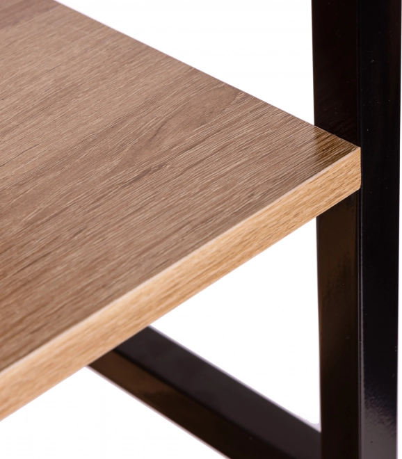 Kombinace černého kovového rámu a MDF polic nabízí moderní vzhled a spolehlivou konstrukci.