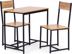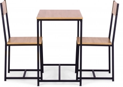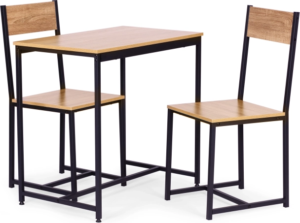 Tato sada nábytku se skládá z robustního stolu a dvou židlí, které jsou perfektní pro moderní bydlení. Jednoduchý a univerzální design umožňuje snadnou integraci do různých druhů interiérů. Sada nabízí ideální řešení pro menší byty, kanceláře nebo čekárny.