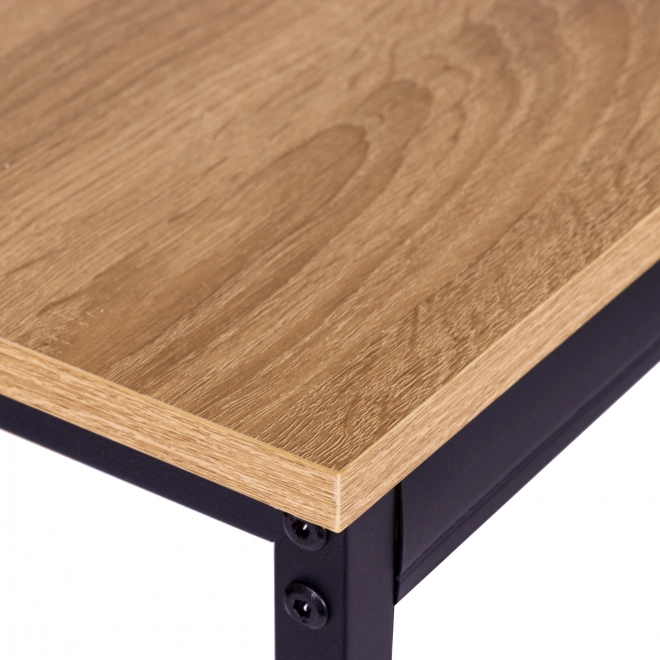 Stůl s MDF deskou v imitaci dubového dřeva je odolný proti poškrábání a snadno udržovatelný. Je ideální pro každodenní použití jako jídelní nebo pracovní stůl.
