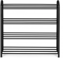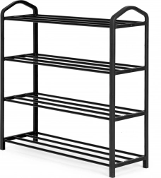 Kovový botník se čtyřmi policemi v moderním designu značky ModernHome je perfektním řešením pro organizaci obuvi v domácnosti i kanceláři. Jeho univerzální konstrukce vám umožní snadno uspořádat až 12 párů bot na plochy vyrobené z kovových trubek, což zajišťuje jejich stabilitu i při maximálním zatížení.