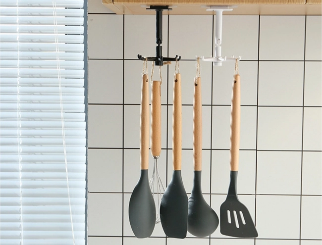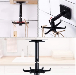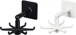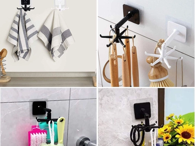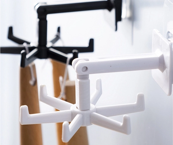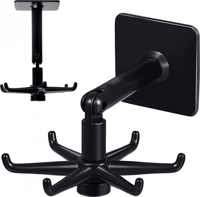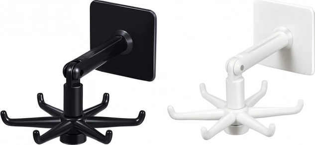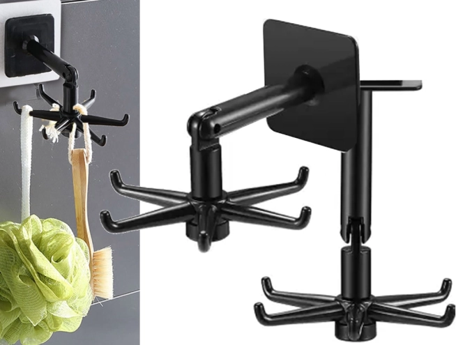 Věšák je vyroben z kvalitního plastu a je navržen tak, aby poskytoval všestranné řešení pro zavěšení nejen kuchyňského nádobí, ale i koupelnových doplňků jako jsou houbičky či ručníky. Díky otočnému designu o 360° můžete snadno a rychle přistupovat ke všem uloženým věcem.