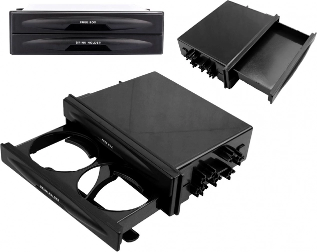 Vylepšete interiér vozu chytrým doplňkem, který šetří místo a zvyšuje komfort na cestách. Držák se instaluje do standardního 1 DIN rádia slotu a nabízí dvě výsuvné části: praktickou horní zásuvku na klíče, mince či drobnosti a spodní držák na nápoje pro kelímky, plechovky i lahve.