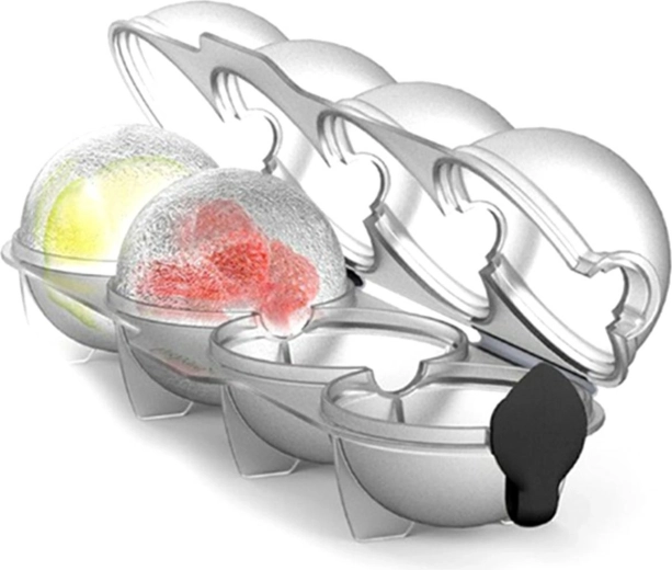 Vytvořte si doma dokonale kulaté ledové koule pro stylové servírování nápojů. Foremka na 4 koule s praktickou silikonovou zátkou umožňuje snadné nalévání vody a těsné uzavření pro bezpečné mrazení. Ideální pro drink y, limonády, šťávy i perlivou vodu – efektní doplněk na každou párty i do domácnosti.
