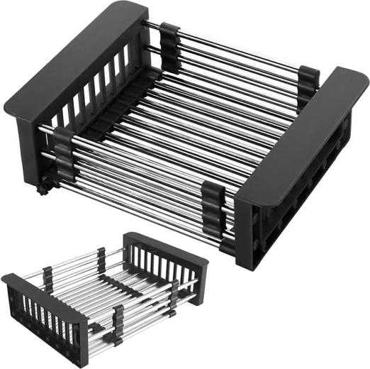 Objevte pohodlí s univerzálním a rozkládacím odkapávačem na dřez, který se stane nepostradatelným pomocníkem ve vaší kuchyni. Díky hustě osazeným ocelovým tyčím zajišťuje bezpečné odkladání nádobí. Silikonové okraje usnadňují pevné uchycení a teleskopická konstrukce umožňuje snadné přizpůsobení téměř každému dřezu.