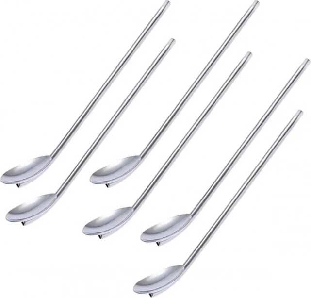 Stylová sada 6 kusů kovových brček se zakončením ve tvaru lžičky pro pohodlné míchání a srkání. Vyrobena z nerezové oceli, jsou opakovaně použitelná, bez vlivu na chuť a vůni nápojů a lze je mýt v myčce. Ideální pro kávu, dezerty i koktejly a každou domácí party.