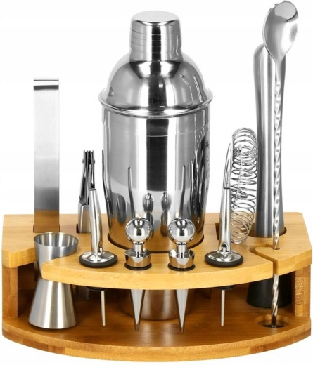 - Kompletní výbava pro míchání koktejlů: shaker, jigger, sítko, lžíce, drtič a další nástroje.