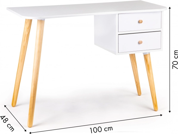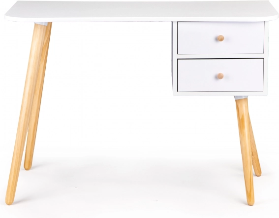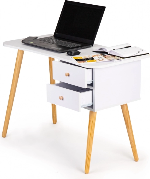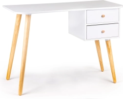 Stylový stůl ModernHome vyniká minimalistickým skandinávským designem, který skvěle zapadne do moderních interiérů. Borovicové nohy v přírodním dekoru harmonicky ladí s bílou deskou a zajišťují pevnost a stabilitu. Praktické dvě zásuvky udrží dokumenty, sešity i drobnosti vždy po ruce.