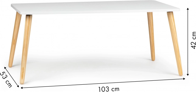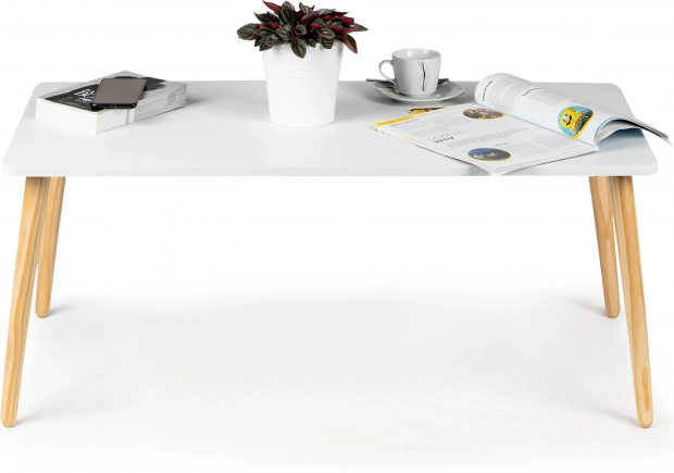 Vneste do interiéru svěží skandi styl. Stolek s deskou 100 × 50 cm poskytne dostatek místa pro kávu, dekorace i časopisy, zatímco výška 42 cm je pohodlná k sedací soupravě. Díky lakované MDF je povrch odolný proti poškrábání a zabarvení, takže zvládne i každodenní provoz.