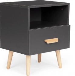 Funkční členění s jednou zásuvkou a otevřenou policí poskytne místo pro knihy, telefon, budík i drobnosti, které chcete mít na dosah. Odolné laminované povrchy se snadno čistí a pevná konstrukce zajišťuje dlouhodobou stabilitu.