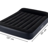 Nafukovací postel INTEX je ideální pro dvě osoby – skvěle poslouží pro hosty, na chatu i kempování. Vrchní vrstva s příjemným velurovým potahem je voděodolná a příjemná na ležení, zatímco pevné PVC zajišťuje odolnost. Vestavěná elektrická pumpa (220–240 V) připraví lůžko k použití přibližně za 250 sekund, velký ventil umožní rychlé vyfouknutí a snadné složení.