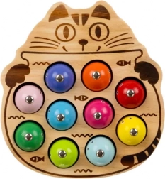 Součástí balení jsou dřevěná deska ve tvaru kočičky, 10 magnetických rybek a 2 magnetické pruty.