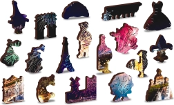 Luxusní dřevěné puzzle s motivem noční Paříže a ohňostroje přináší jedinečný zážitek ze skládání. Unikátně tvarované dílky inspirované stavbami, předměty a zvířaty potěší každého milovníka originálních hlavolamů. Oboustranné provedení 2v1 umožní skládat jak podle barevného motivu, tak podle opakujícího se vzoru na rubové straně.