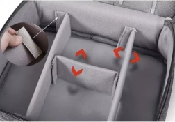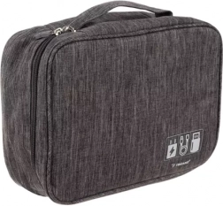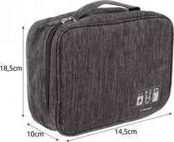 Hlavní část organizéru obsahuje nastavitelné a oddělené přihrádky pro nejrůznější druhy kabelů, nabíječek a jiného příslušenství. Přihrádky sítě a gumičky zaručují, že vše zůstane na svém místě. S rukojetí pro snadné přenášení je to ideální společník na cestách, do kanceláře nebo na schůzky.