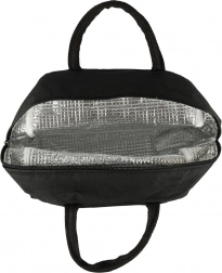 Díky prostorné hlavní kapse pohodlně uložíte krabičku s jídlem i nápoj. Přední kapsa je ideální na příbory, ubrousky nebo mobil. Pevná textilní ucha zajišťují pohodlné přenášení a jednobarevný materiál se snadno čistí.