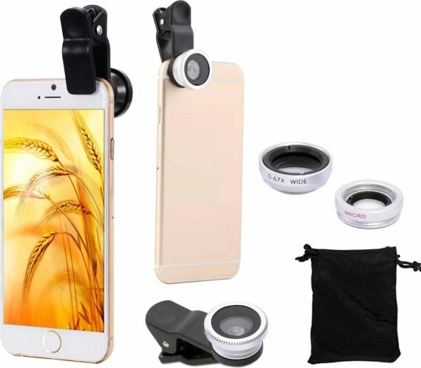 Univerzální sada objektivů pro chytré telefony a tablety promění vaše fotky v kreativní záběry. Obsahuje Fisheye, Macro a Wide Angle objektiv, které jednoduše nasadíte pomocí pevného klipsu. Ideální pro širokoúhlé záběry, detailní makro i efekt rybího oka. Součástí je pouzdro a krytky proti poškrábání.