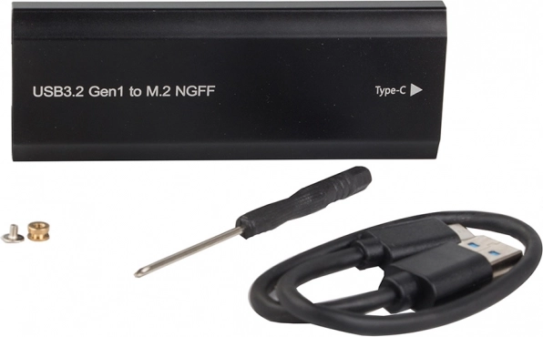 - Box pro M.2 SATA NGFF SSD, USB kabel, montážní příslušenství, balení