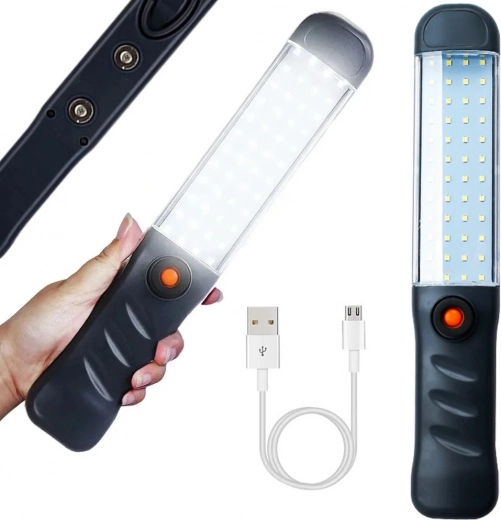 Kompaktní dílenská LED svítilna s technologií COB a 48 diodami poskytuje výkonné a rovnoměrné osvětlení pro práci v dílně, v autě i doma. Díky dobíjecí baterii přes USB, otočnému háčku a silným magnetům ji snadno umístíte kamkoli a uvolníte si ruce. Ergonomická rukojeť a více světlostních režimů zajišťují pohodlné a úsporné používání.