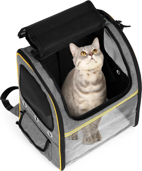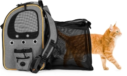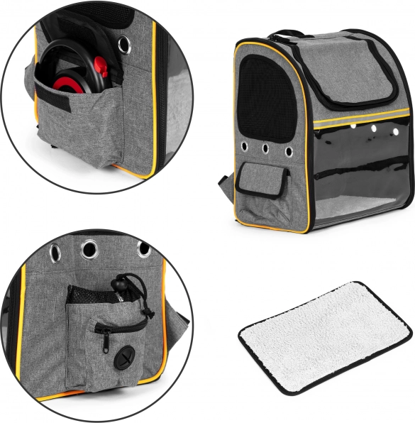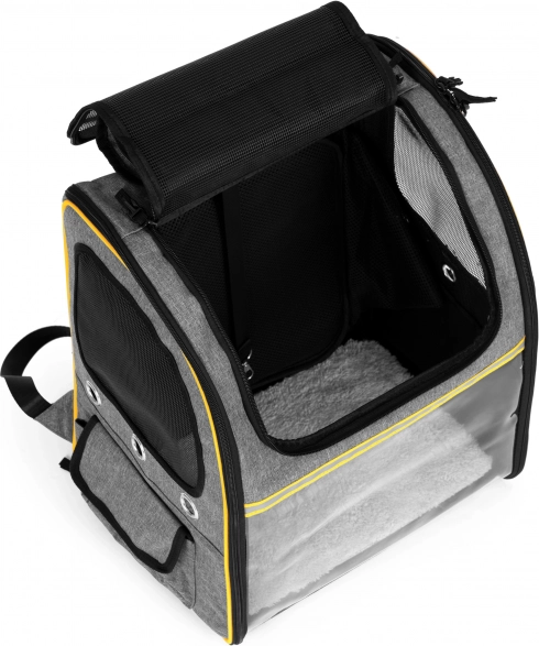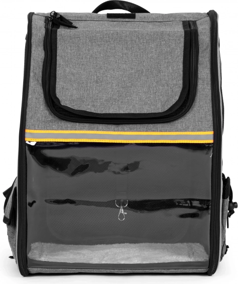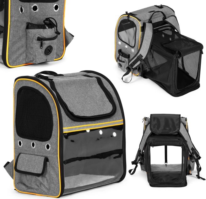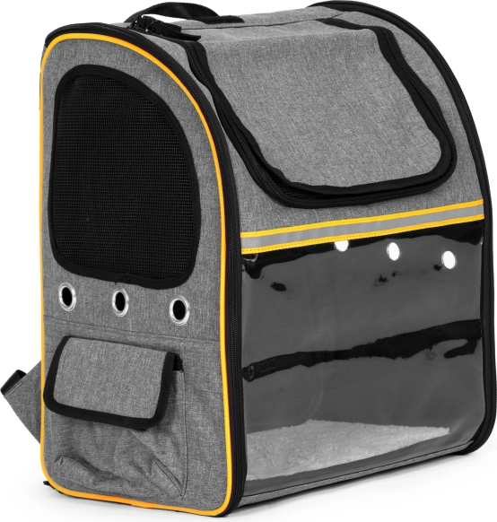 Transparentní „sklo“ uklidňuje zvíře výhledem ven, zatímco síťované panely a ventilační otvory zajišťují stálý přísun vzduchu a pohodlí na cestách.