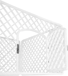 Vytvořte svému zvířeti vyhrazené místo pro hraní a odpočinek. Bílá ohrádka PETSI s rozměry 91 × 91 × 60 cm zajišťuje dobrou viditelnost a větrání, současně však udrží mazlíčka v bezpečí. Zaoblené prvky snižují riziko poranění a uzamykatelná branka brání náhodnému otevření.