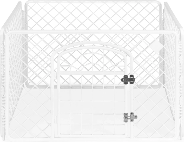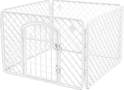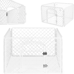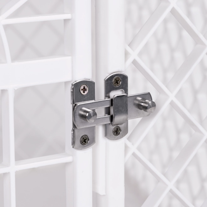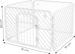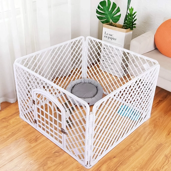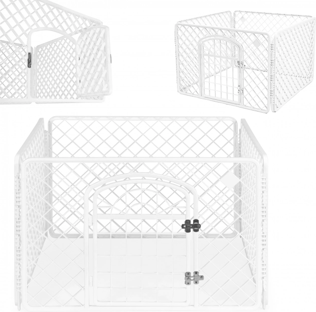 Čtyřdílná odolná plastová konstrukce je stabilní a přitom lehká, takže se snadno přenáší. Rychlé složení i rozložení bez nářadí šetří čas a místo – po složení zabírá minimum prostoru. Ideální jako ohrádka, výběh nebo chovatelská klec pro psy, kočky, králíky a další malá zvířata.